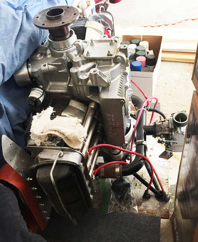 KR2 builder Wayne Hood passed away recently,having never flow the KR2 due to losing his medical. This left a Great Plains 2180cc VW engine in his basement. It has 46 hours of runtime on it. This was done over time, mounted to the KR2 and running in the driveway at various RPMs, just to keep it from rusting. Most recent run was four years ago, but it has been located in a garage ever since. As you can see from the photos, the engine is a dual-port, complete with a Great Plains "Force One" prop hub. Documentation indicates that it has a magneto on the aft end and also the GPASC "CompuFire) electronic ignition system on a Diehl case, along with dual plugs. Carburetor looks like a new Zenith. Also included is the oil cooler and oil filter adapter (presumably firewall mount), as well as a KR2 engine mount (also shown in the photos). This looks a be a totally complete firewall forward engine setup, as removed from the plane in running condition.